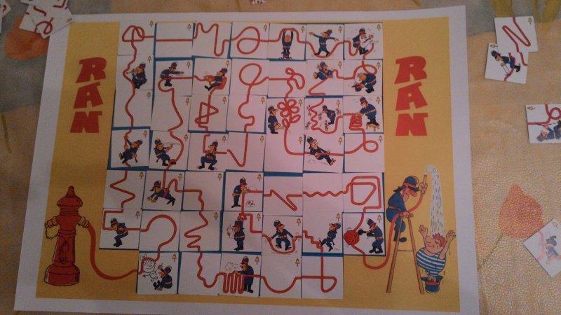 очень просто. маленькие карточки кладутся рубашкой вверх. игроки по очереди берут карточку и приставляют к шлангу на поле. Нужно заполнить карточками все поле без пропусков. Если игрок взял карточку и она не подходит - оставляет у себя и ход переходит другому. Выигрывает тот, у кого в конце игры на руках остается меньше карточек. Интересно еще и то, что с каждым ходом нужно согласовывать в какую сторону направляем шланг чтоб не создать тупиковую ситуацию