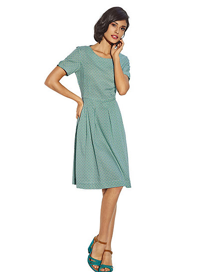 Немецкий 40, идет на полноценный российский 48. К сожалению, цвет на фото плохо передан, на самом деле он красивее и естественнее - яркий и насыщенный зеленый. Особенность модели: возможно варьировать форму горловины.