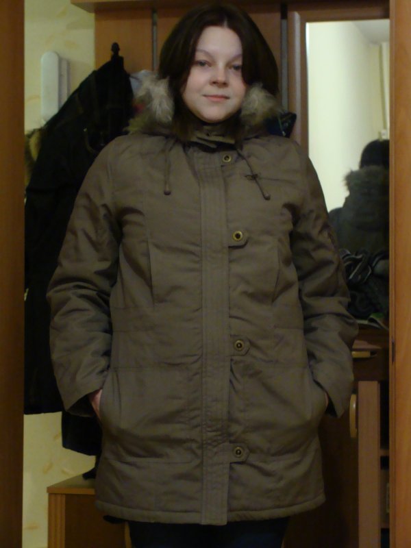 Цвет нейтральный, наиболее точно передан на первой фотографии. Материал предположительно хлопок, очень-очень плотный, за счет весит парка немало. Демисезонная куртка оказалась тяжелее зимнего пуховика, это было неожиданно. Но, думаю, это неплохо, за счет плотного материала парка должна быть непродуваемой. Немецкий 40, идет на полноценный российский 48. Опушка из искусственного меха.
