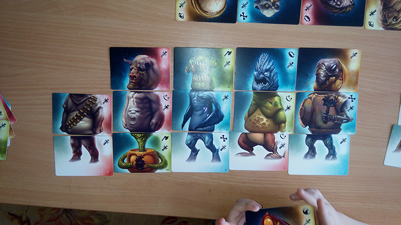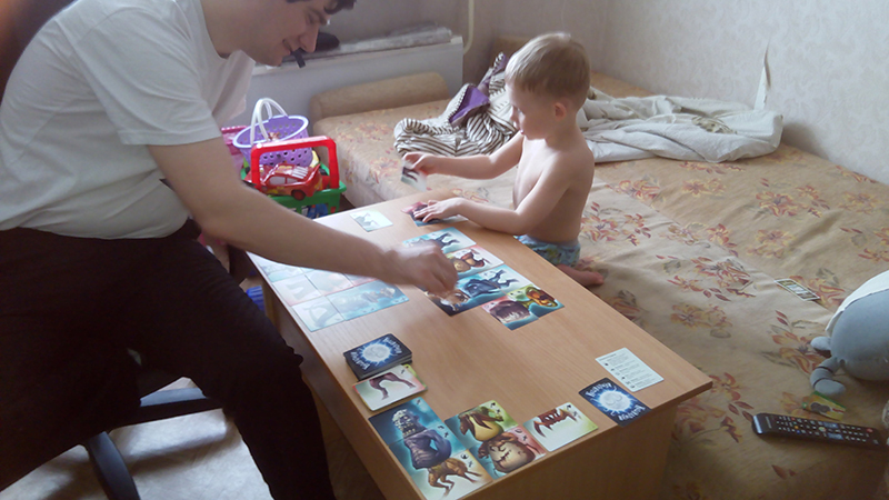 в первый раз у нас выиграл папа, но ему невероятно повезло с картами, пришли ровно те что были нужны для завершения последнего монстра.