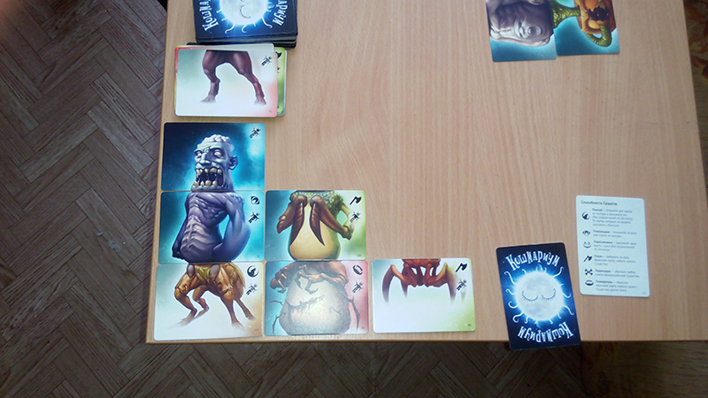Надо составлять монстров (ночные кошмары) из частей. Цель первым собрать пять монстров. Это не так просто, надо что бы и нужные карты выпали и противники не мешали. Собранный монстр обладает рядом свойств, в том числе и может пожрать или еще что-нибудь сделать с монстрами противника.