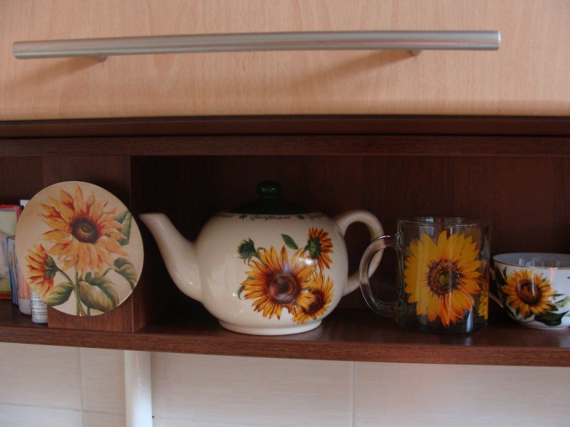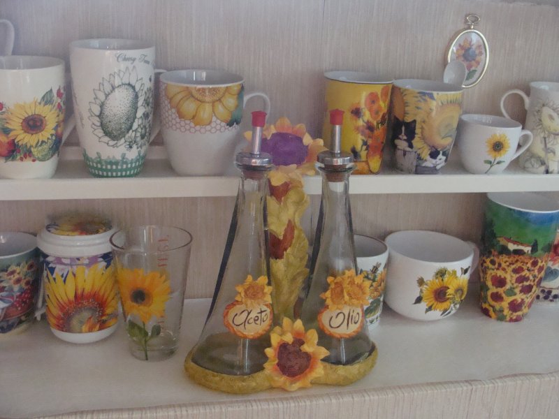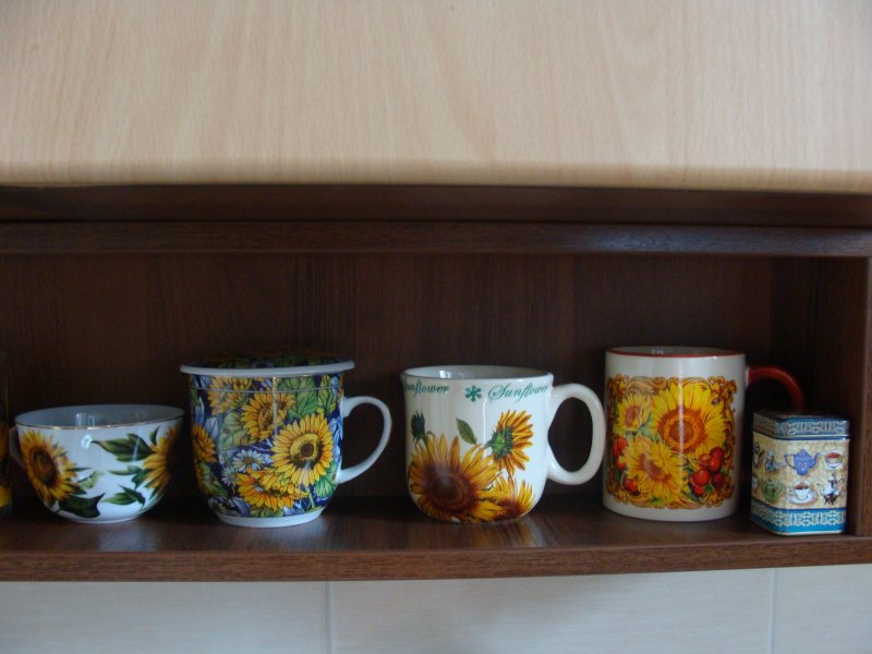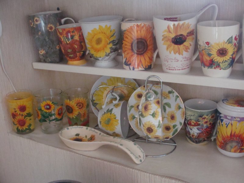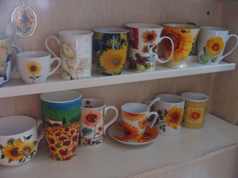 :-)Решила и я показать свою коллекцию "Любимые подсолнухи". :-) Они у меня везде, но основа коллекции все таки кружки и чашечки.