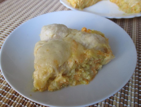 338. Запеканка из кабачков с фрикадельками.