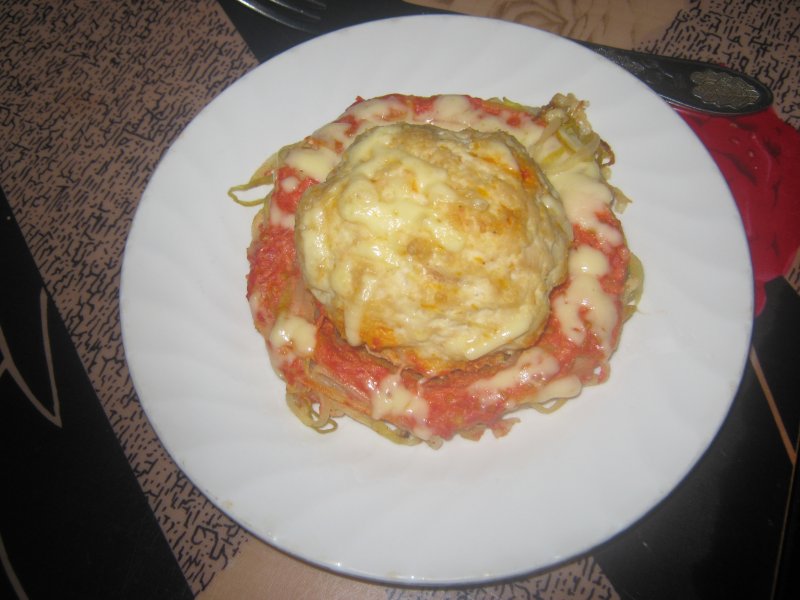 ИРРА Добрый день. Пришла хвастануть, а то уже третью неделю готовлю из этой темы. :oops: Вчера делала "Курица в гнезде" - некая квинтэссенция из рецептов "Спагетти из кабачков с курицей" и "Запеканка из кабачков с фрикадельками" и нескольких страниц разговоров про терку для кабачка. Сделала котлетки из куриного филе и отварила их. Натерла кабачок и навертела из этого гнезда. У меня вот такая терка (ей уже лет 20) Посадила в гнездо кур. котлетку. Залила вокруг соусом (сметана + помидорка). Выглядит как-то кроваво. :o На противень немного воды и в духовку. (Эх как-бы здорово было сделать порционо, но не знаю в чем) Потом еще сыром посыпала. И вот
