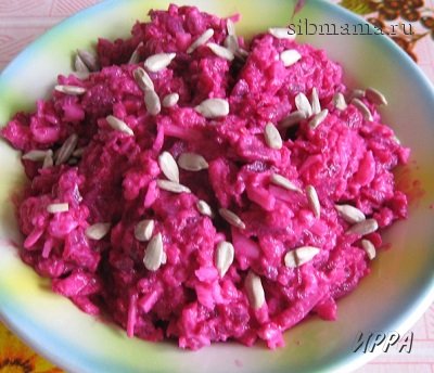 5. Посыпаю сверху семечками или грецкими орехами, даю постоять минут 10, чтоб все компоненты "подружились" и наслаждаюсь