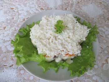 P.S. если у вас нет сыра, то этот салат можно выложить порционно, используя любую формочку:
