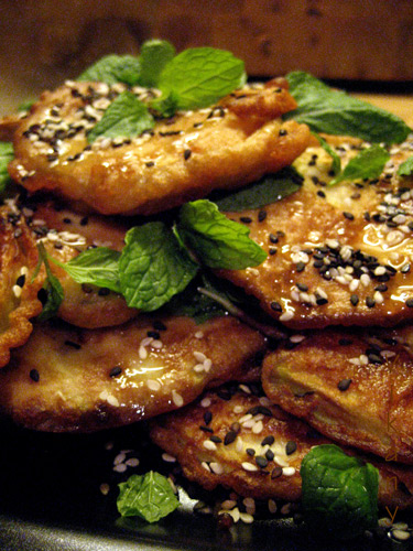 нарезаются вдоль тонкими полосками, посыпаются солью и выдерживаются пол часа, затем обсушиваются, перчатся, обваливаются во взбитом яйце и обжариваются.