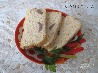 Я забыла ее вчера купить, поэтому использовала хлебную форму, а она великовата для такой порции. Но и большую порцию делать не рекомендую, это все-таки мясное блюдо и храниться он может в холодильнике двое суток.