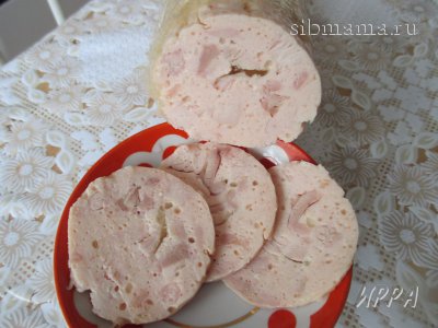 Юля, в ветчиннице большой диаметр. Ну, и собирать-разбирать ради непонятного рецепта, честно говоря, не хотелось. Хотя там, конечно, прессовка будет лучше. Следующий раз сделаю в ней и сравню результат. Семье очень понравилось, так весь день и таскают её понемногу, одну колбаску уже приговорили . А цвет даёт свекла, без неё он будет серым.