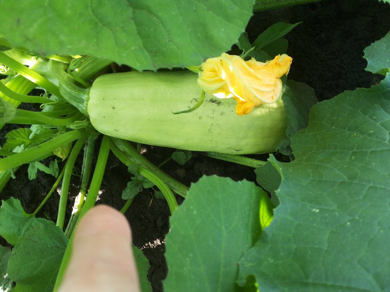 А вот Улыбка, которая сразу в грунт посажена, ничего так растет. Сегодня обнаружила первый женский бутон, но еще не цвела . Караулю, чтоб специально с кабачком переопылить :-)