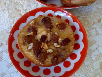 4. Выпекать в духовке при температуре 180 градусов 10-15 минут (сильно зависит от сорта яблока). Я выпекала в мини-печке Панасоник 15 минут на нагреве "Высокий"