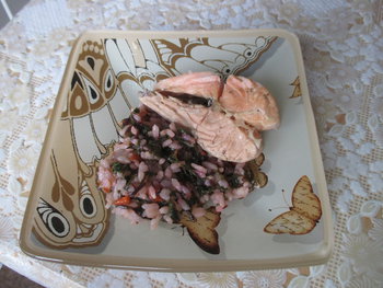1. Форель посолить, сбрызнуть лимонным соком, дать полежать минут 10, затем приготовить на пару.