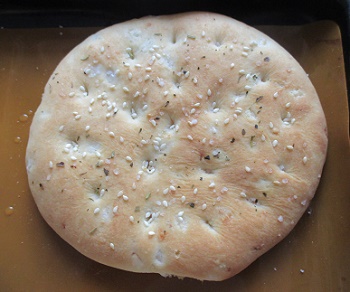 7. В лепешках сделала углубления, смазала лепешки маслом, посыпала морской солью и прованскими травами (без фанатизма!). Дала расстояться примерно полчаса.