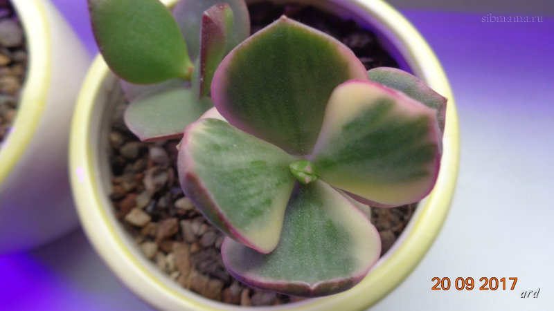 1) зелёный росток из листа 'Solana' и 'Tricolor'