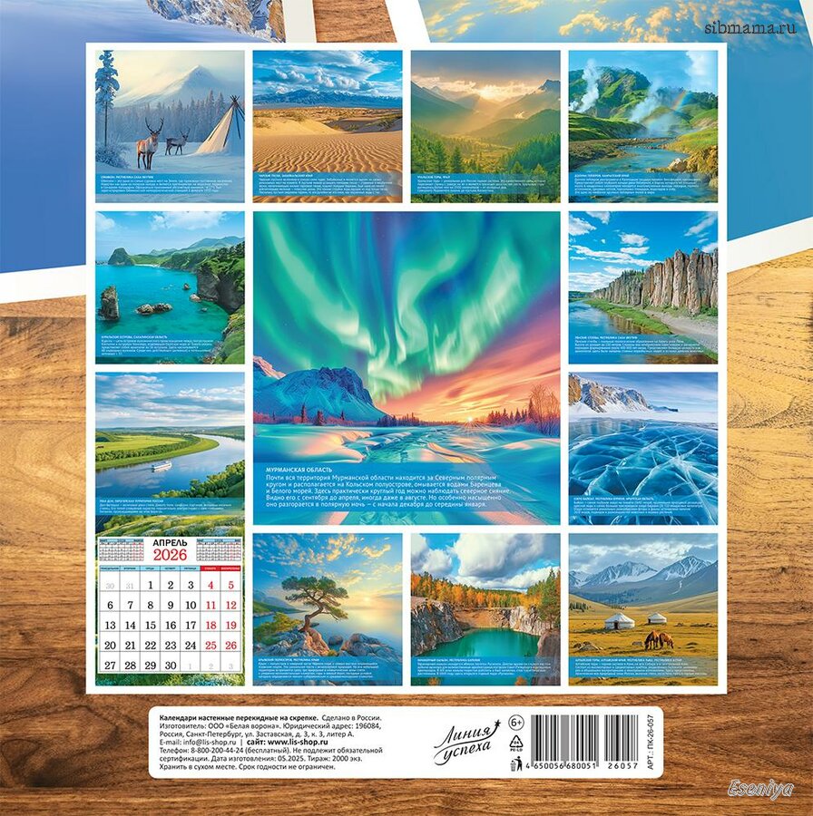 Календарь на 2026год настенный на скрепке 12 листов (ФОНТАНКА) ПК-26-057 23*23см Уникальные места России 69,9