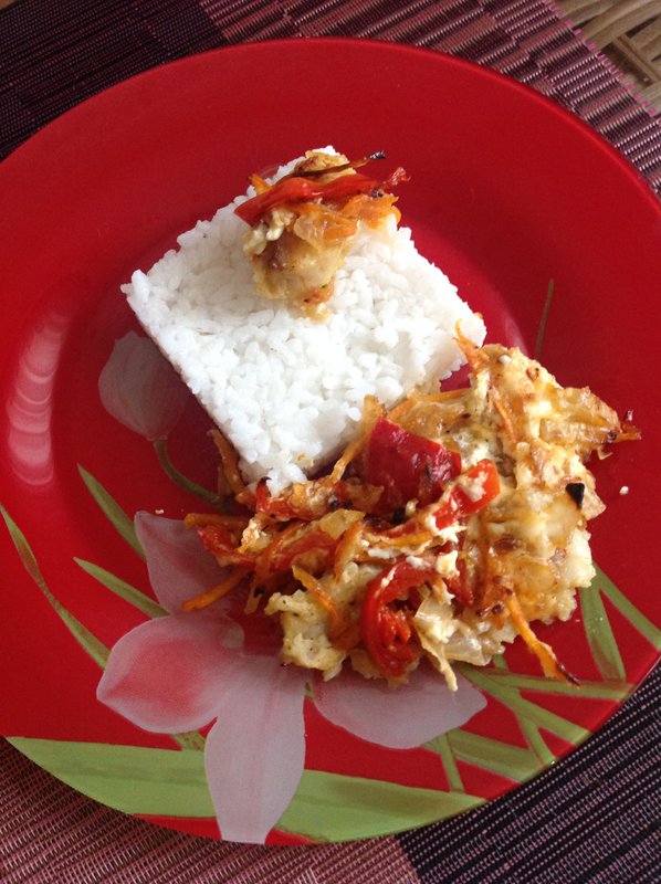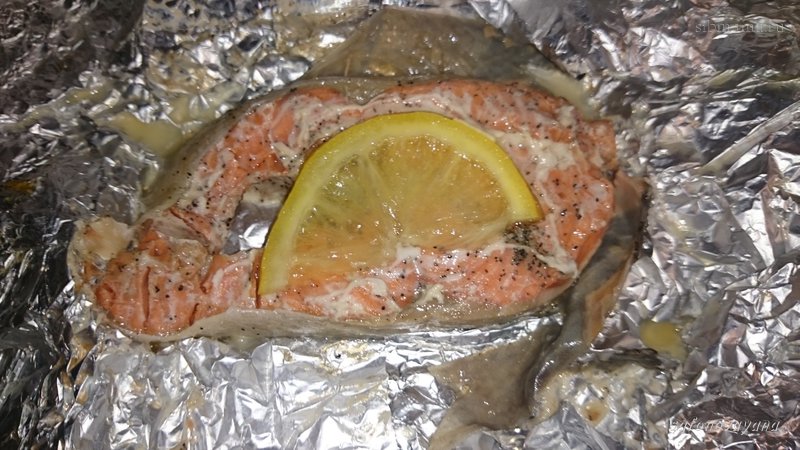 Выложила весь этот маринад на рыбку,чуть чуть сверху майонеза