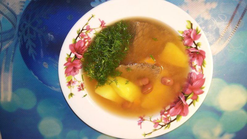 Фасолевый суп с телятиной. Я ем без картофеля. Мальчишки с картофелем. Картофель варю отдельно, потом отливаю себе суп и вливаю в него воду от картофеля варенного и сам картофель