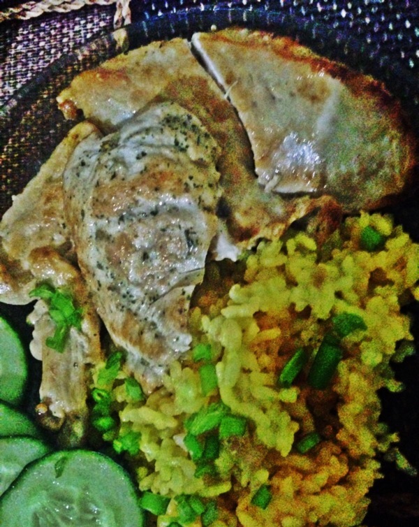 Я отбила филе предварительно (померчила,посолила,сухой чеснок) и обжарила с двух сторон(по 2мин на каждой) а разогретой сковородке.Потом положила в соус и выключила плиту.