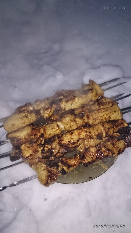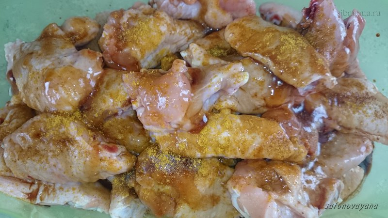 Маринад: терияки, соевый, мед, растопленный в микроволновке, карри.