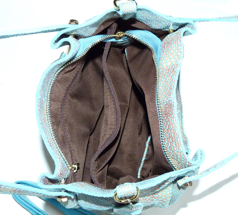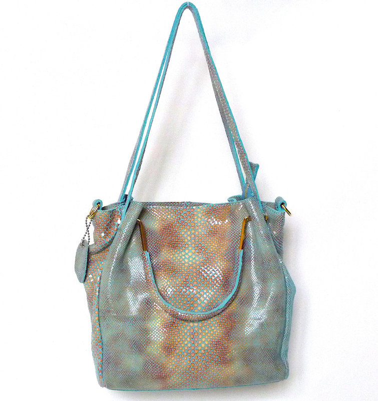 В наличии три цвета: бирюза, пыльная роза и бежевый питон. Цена 4000