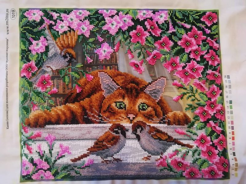 Вышивка бисером. Картина "Искушение кота Василия". Здесь еще без багета, намного ярче смотрится. А на багете стекло бликует на фото