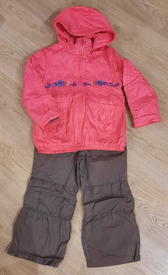 Костюм KIKO 98р состоит из флисовой кофты и штаны мембрана(плащёвка) на х.б подкладе. Идеально носить с мая по сентябрь-разные варианты можно одевать с жилеткой, летом флиска идеална назамке+капюшон, штаны потом можно носить с тёплой курткой-короче как вам угодно-)