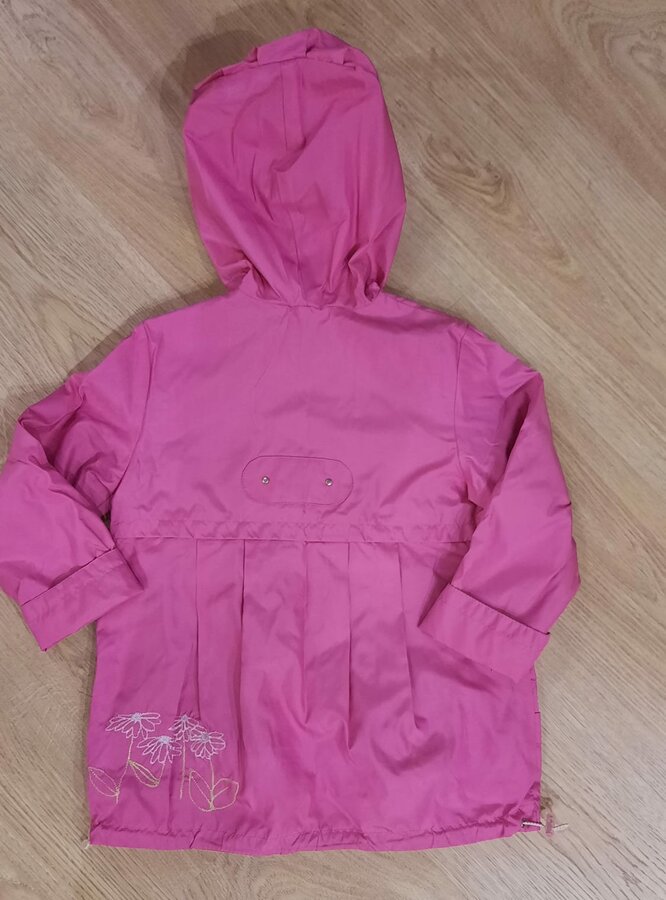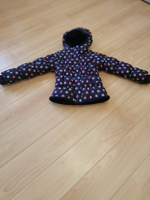 Маркировка 98, но куртка точно большемерит, можно носить лет до 5. Рукав от плеча 42 см, ширина между подмышек 35 см, длина по спинке 48 см (удлинённая), по переду немного короче.