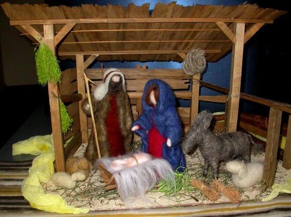 В этом вопросе православные и католики обычно расходятся. Первые предпочитают благоговейно заменять святое семейство иконой (волхвы, пастухи и животные при этом могут быть игрушечными, ничего страшного!), а вторые позволяют себе использовать для обозначения Марии, Иосифа и Христа куколок и статуэтки, а также самодельные игрушки. Пожалуй, для творчества интереснее все-таки последний вариант.