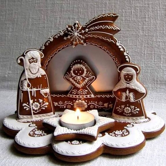 Мой любимый вариант - рождественский вертеп, собранный из пряников: