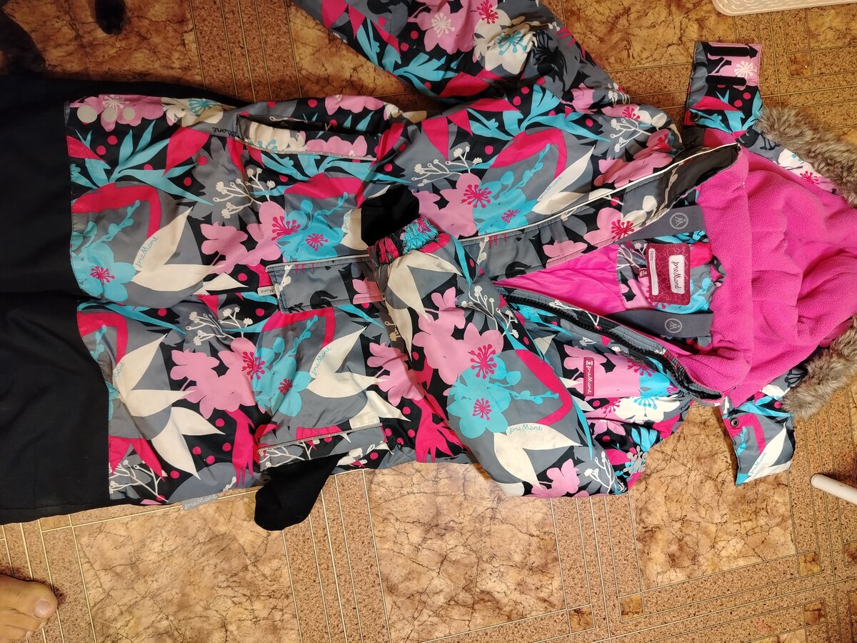 Зимний цветной,для девочки, очень тёплый, гулятельный, ношен хорошо. Р. 134-140. Цена 1000. Следы носки видны только при детально осмотре. Находится в кольцово. Замеры в лс
