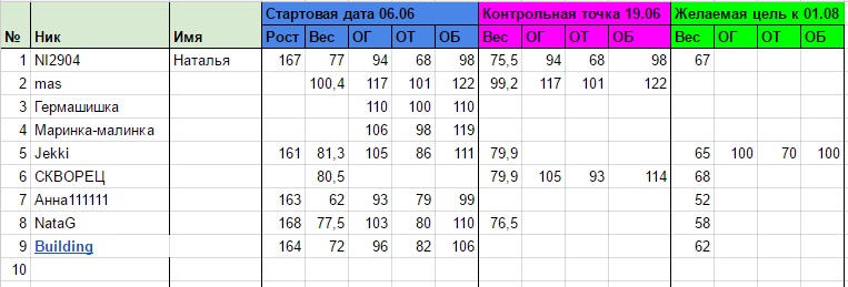 Таблица замеров забег с 06.06!