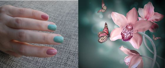 Я в последний вагон со своим коллажем. У меня стандартные сиреневые орхидеи. Просто не могла не накрасить лаком с названием Orchid Splash (средний и безымянный).