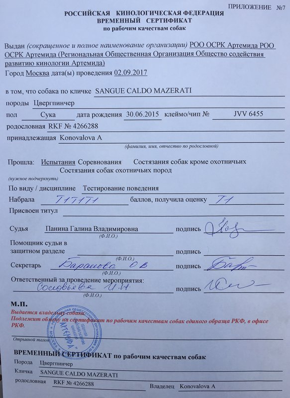 судья: Панина Г.В.- высшая оценка Т-1, пожизненный допуск в разведение.