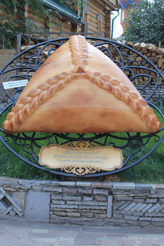 Очень своеобразное архитектурное решение, символизирует семейный очаг и казан, в котором готовится пища на всю семью, вроде так, а мне понравились мифические существа с титьками и младенцами