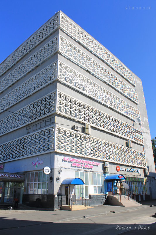На 2 этаже - магазины тканей и ателье. На 7 - кафе-бар-кальянная.