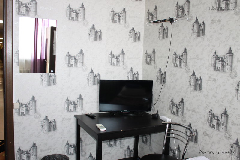 Он с прихожей, в ней шкаф-купе с вешалками, одноразовые тапки, зеркало. Напротив номера - туалет и душевая, все новое, плитка красивая, очень чисто, полотенца не положены, но нам принесли, когда я огорчилась))