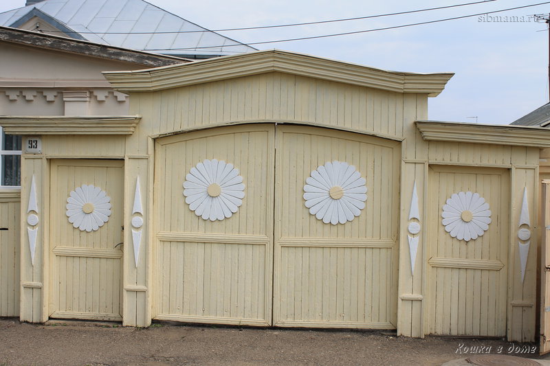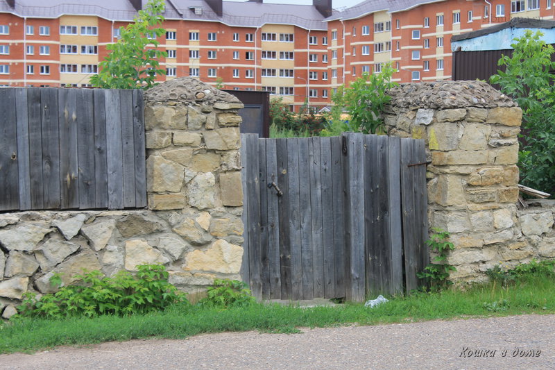слева частный дом с колоколом