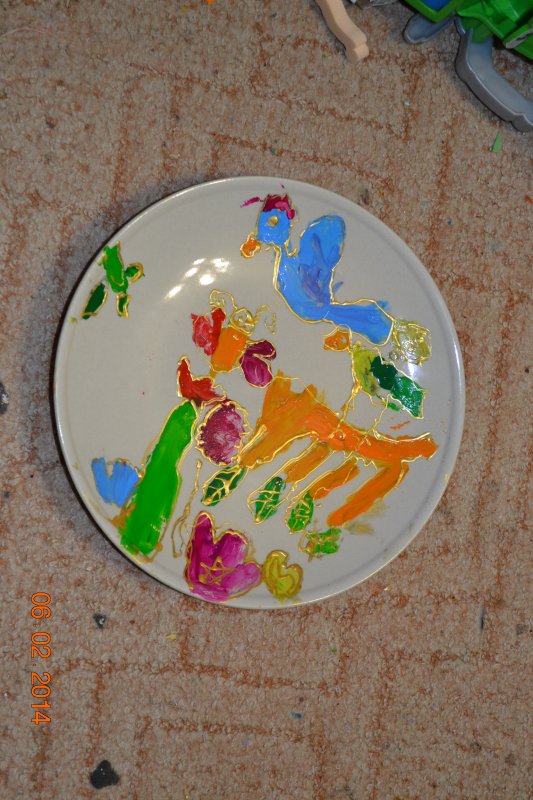 А это она тарелку расписывала по своему эскизу