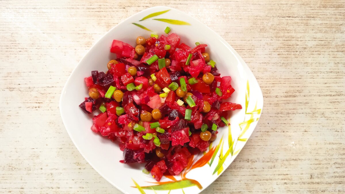 Винегрет, свинина со стручковой фасолью в азиатском стиле