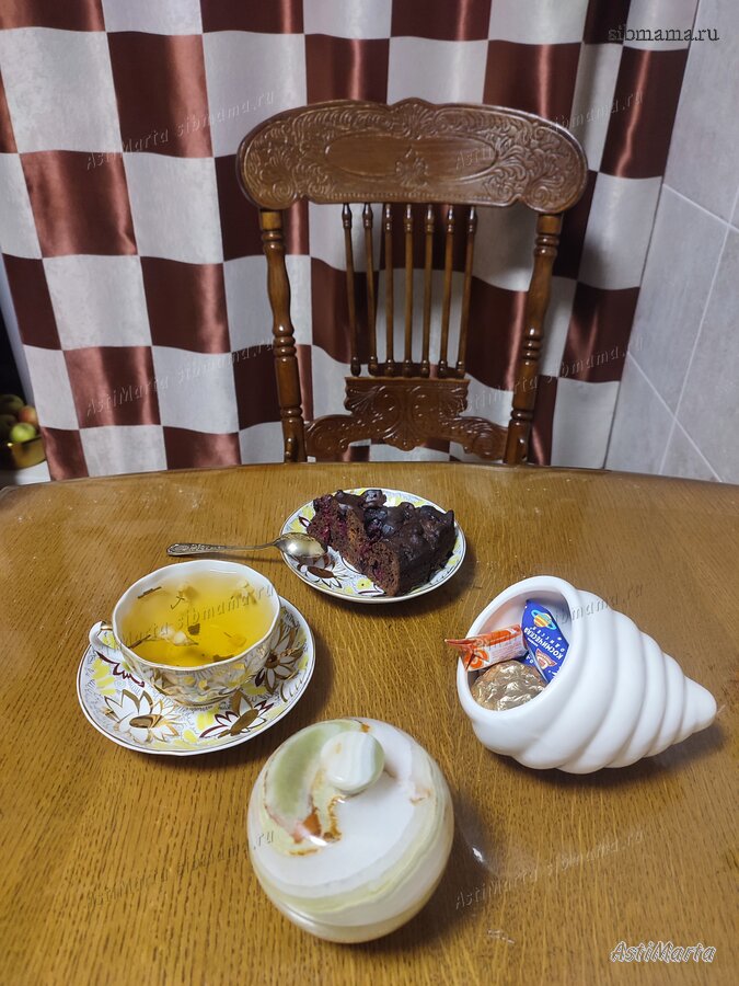 И ещё шоколадный кекс с вишней к чаю