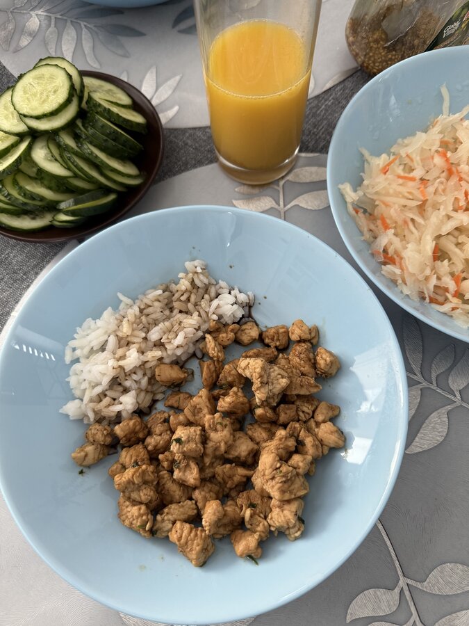 Индейка с рисом , сельдь , том ям с тунцом
