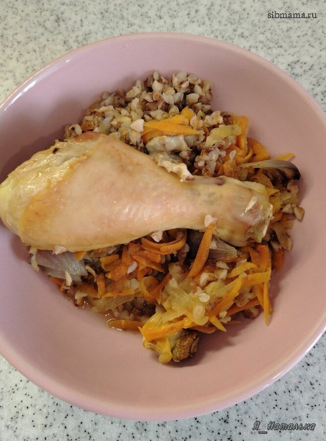 Курица с гречкой овощами и грибами