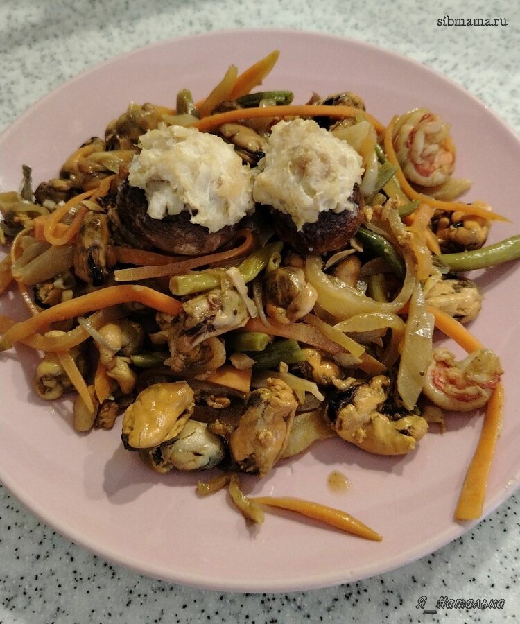 Морепродукты с овощами и фаршированные Грибы