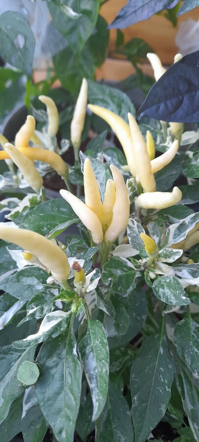 Очень красивый сорт. Зелёно-белая пёстрая листва, плоды созревают от тёмно-фиолетового и переходят через диапазон полосатых цветов фиолетового, жёлтого, оранжевого и красного цветов. Вкус сладкий и напоминает аромат халапеньо.