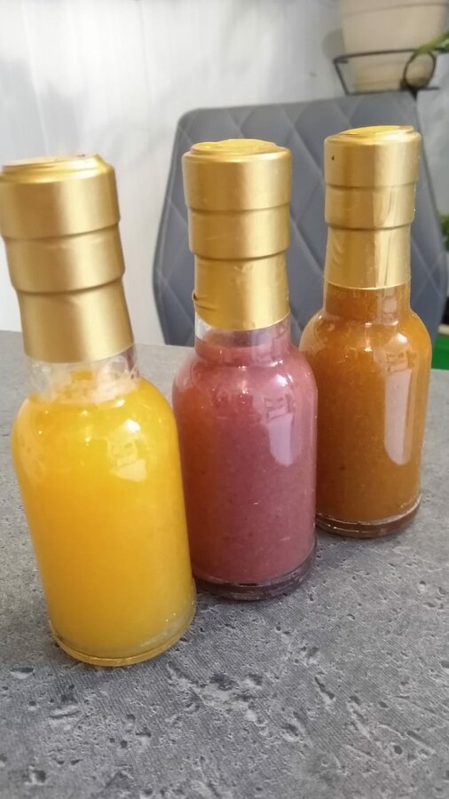 Фаршированный острый перец, вообще первый раз такое слышу! А соусы как шикарно выглядят! Разноцветье :in_love: . Вы какй вес собственно перцев берете на такую бутылочку? Очень остро получается?