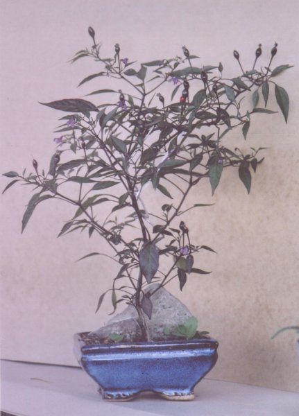 У меня где-то были семена мелкого перчика, по вкусу не пробовала. Лист темный и плоды сначала сиреневые.