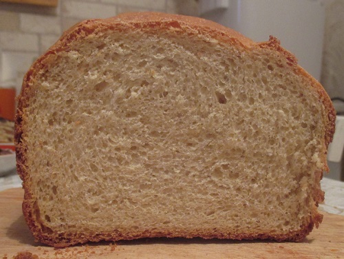 Не могу найти, откуда списала рецепт . Как найду - ссылку добавлю. Рецепт опробовала впервые, поэтому продукты сразу уменьшила вдвое. Можно было и не уменьшать, т.к. хлеб получился очень вкусный, вот только соли мне хватает. Следующий раз немного увеличу.
