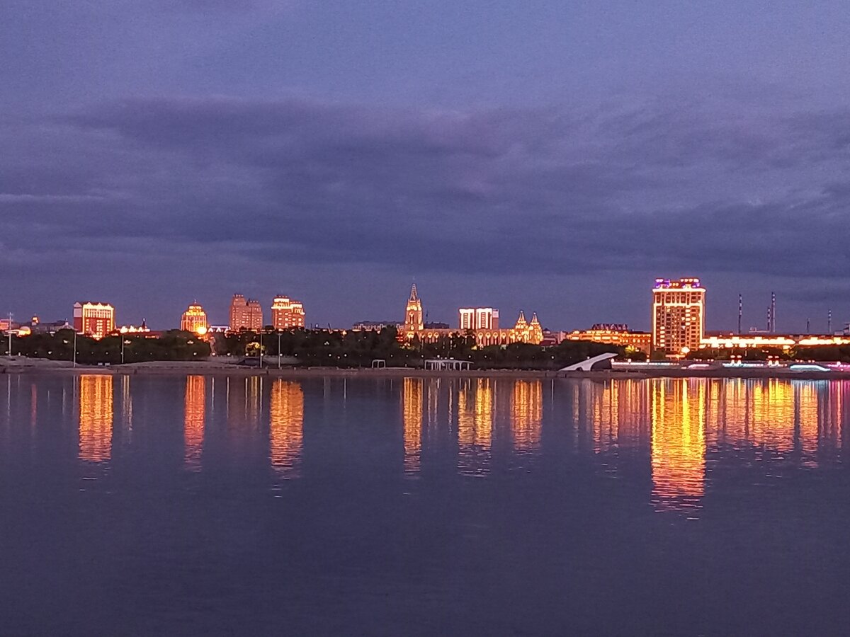 Ну вот и мы вернулись. Все прошло отлично. Очень переживала за погоду, но и тут повезло, первый день пока отсыпались начался дождь и такой приличный, дошли до набережной, в столовую зашли и в супермаркет Ням ням на Ленина. В последующие 2 дня погода прекрасная. Я не очень люблю ходить по музеям больше люблю просто гулять, разглядывать все, вот и здесь нагулялась по центру, по набережной. Очень приятное впечатление от города, по крайней мере, в центре, не выглядит каким то заброшенные, все ухожено, что то ремонтируют. Дома новые красивые строятся. Везде чистота , тротуары выложены плиткой, сделаны съезды. Много зелени, много парковых зон, лавочки. В общем глаз радуется. Набережная шикарная! Я думала Китай подальше, а там прям рукой подать все видно и слышно. Иллюминация, конечно, впечатляет! Включают с 9 до 10 вечера, в первый день я прозевала. На второй уже караулила на набережной.