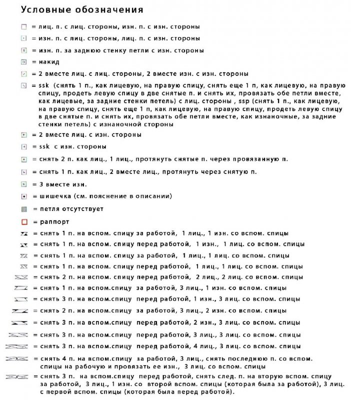 Убавки: В начале ряда провязать кромочную и лицевую, потом 2 вместе лицевой (с наклоном вправо). В конце ряда 3-ю и 4-ю от конца петли провязать вместе (с наклоном влево), 1 лиц., кром.