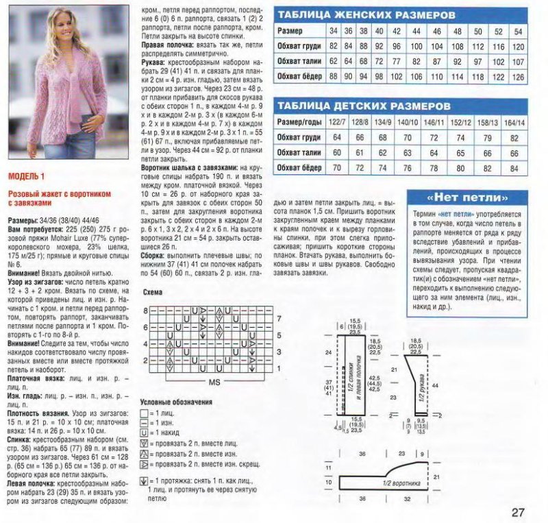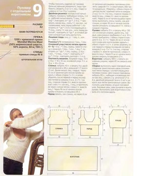 Плотность вязания: (измеряется по слегка растянутой пробе) 21 петля*32 ряда = 10*10 см